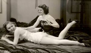 Zickenkrieg: Es gibt auch eine erotisierte "Zickenkampf"[wp]-Szene mit energischem Ringen, Schlagen, Haareziehen und Zerreißen von Kleidern, die zur Belustigung des Publikums inszeniert wird. Ebenfalls seiner Zeit voraus, wird das weibliche Ringen, das als verdeckte sexuelle Erregung dargestellt wird, erst in den frühen 1950er Jahren ausgenutzt werden.[1]